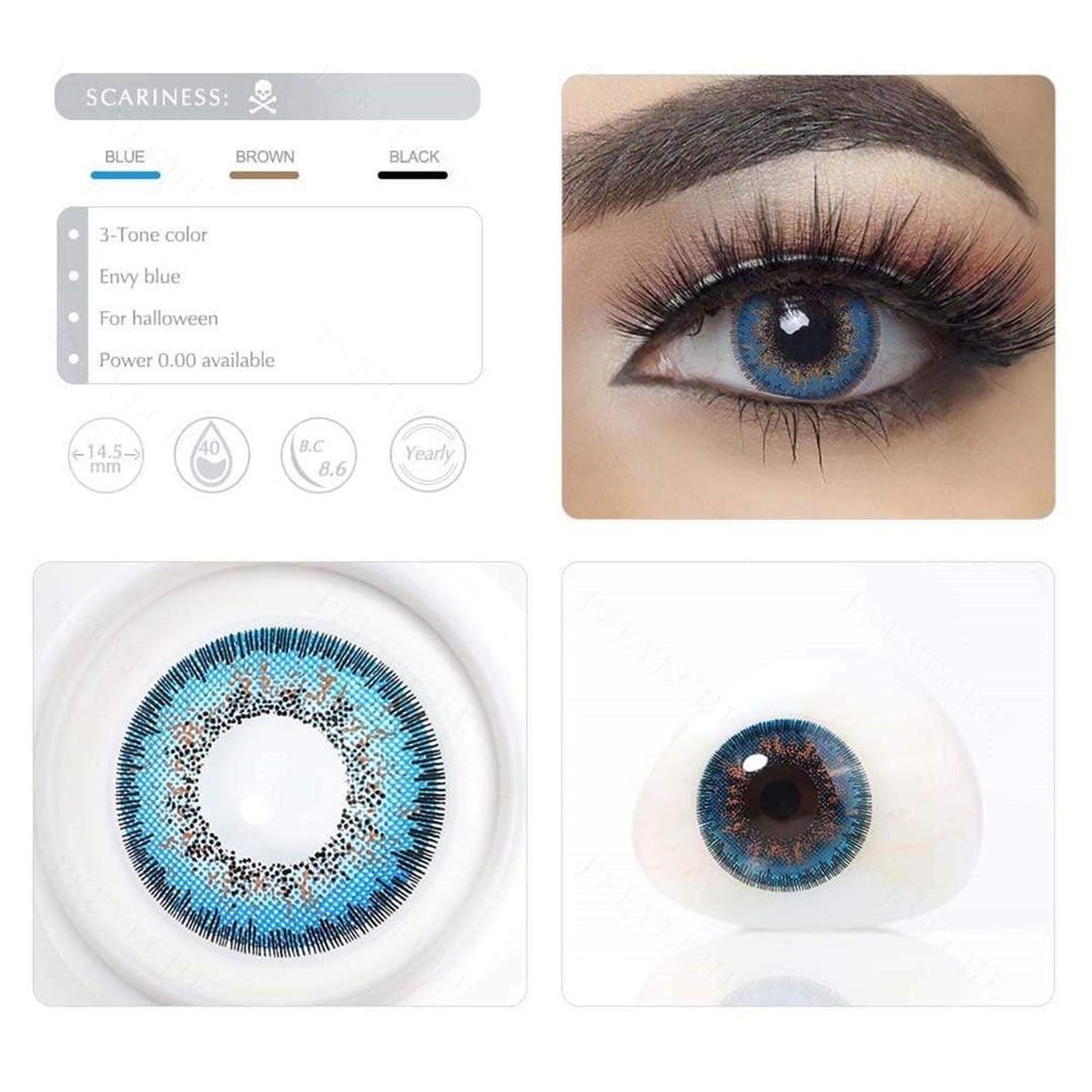 NOTE: Blind Contacts, 17mm and 22mm Sclera might be uncomfortable due to their size. Your eyesight may slightly worsen. Don’t wear them all day. Never drive a car when using contacts, nor take part in any other dangerous activities that require perfect vision. Actual Lens Colour may vary from the image displayed. Images are for illustration purposes only.