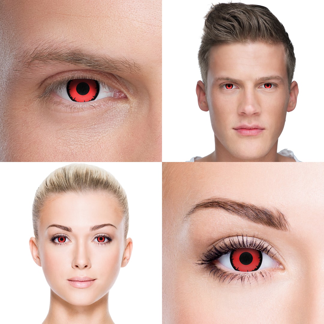 As fresh as a newly minted Vampire! Twilight Breaking Dawn Contact Lenses by Halloween Contact Lenses Australia are just that: contacts based on the famous movie Twilight: Breaking Dawn. They impose a clear and vibrant scarlet color where the red is so deep that one could be forgiven for thinking that your eyes have been soaked in blood. The lenses hide your irises quite well, leaving no clues as to what hides underneath. Encircling and contrasting with the pupil’s inky black depths, the blazing red overwhelms everything else and draws attention from afar.